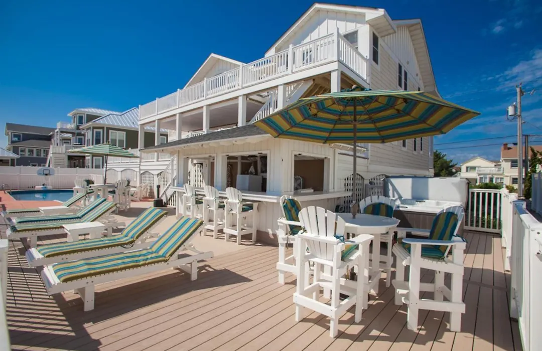 Located within a 5-minute drive of Sandbridge Beach, the 9-bedroom Seaside Serenade boasts a swimming pool with a Jacuzzi.